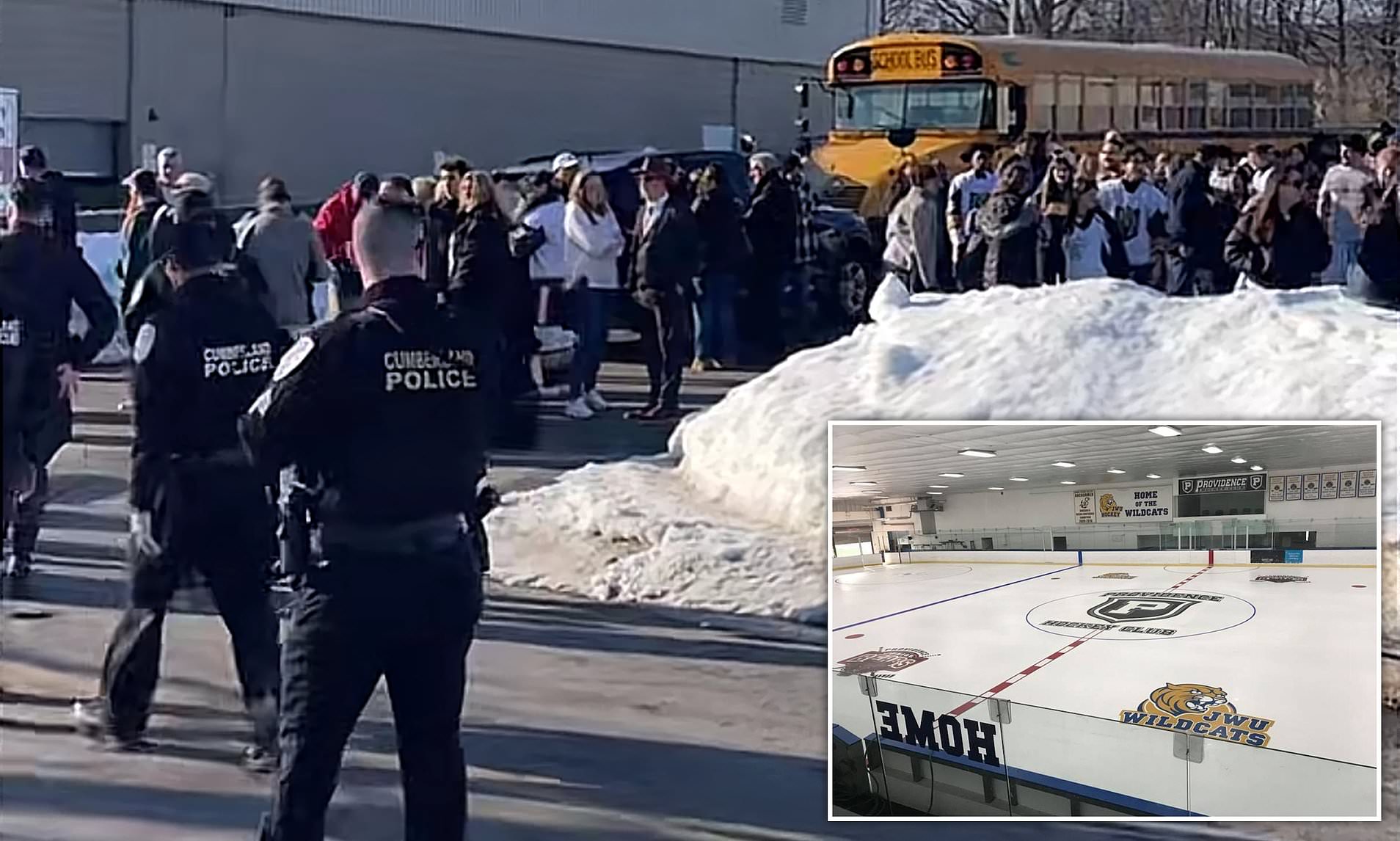 A gunman murdered two people before shooting himself after opening fire at a high school hockey tournament in Rhode Island following a 'family dispute,' according to police.