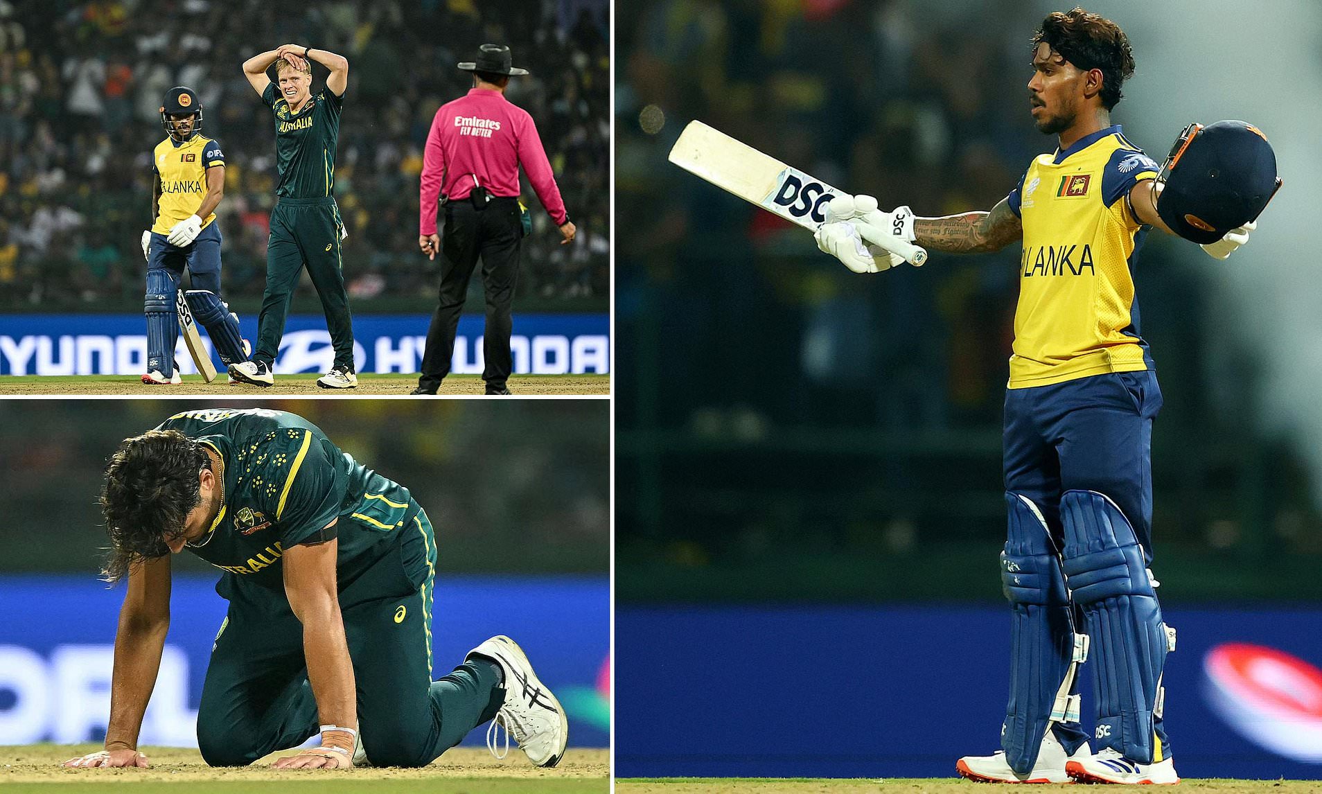 His eventual departure, after Glenn Maxwell (22) had been superbly caught by Nissanka reverse sweeping, prompted another clatter of wickets, the last five going down for seven runs in 12 balls.