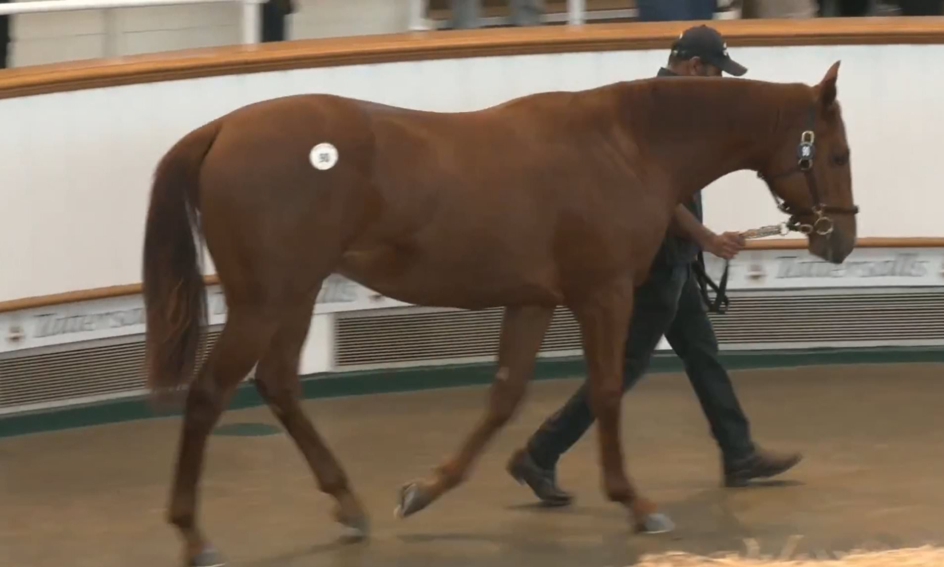 As is the final price. The winning bid comes from Anthony Stroud on behalf of Sheik Mohammed at 3.7million guineas (£3.88m) – he becomes the most expensive yearling sold in the world in 2025; two hours earlier, Amo Racing, the venture of Kia Joorabchian, had paid 3.6million for a Frankel colt.